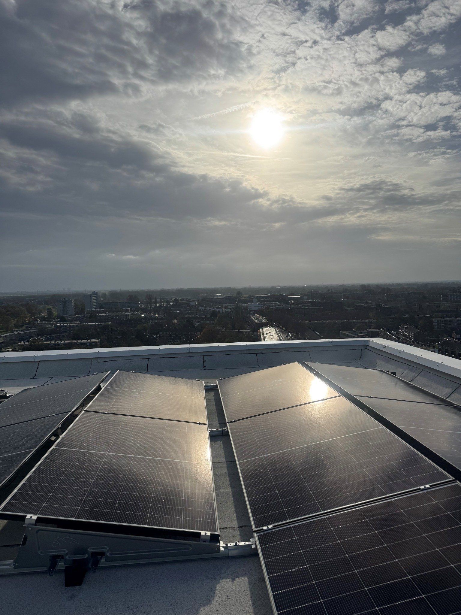 Onlangs hebben we voor een VvE in Rotterdam een plat dak voorzien van 48 zonnepanelen. Dankzij onze efficiënte aanpak was het systeem binnen twee dagen werkend opgeleverd, inclusief monitoring en onderhoudsplan.